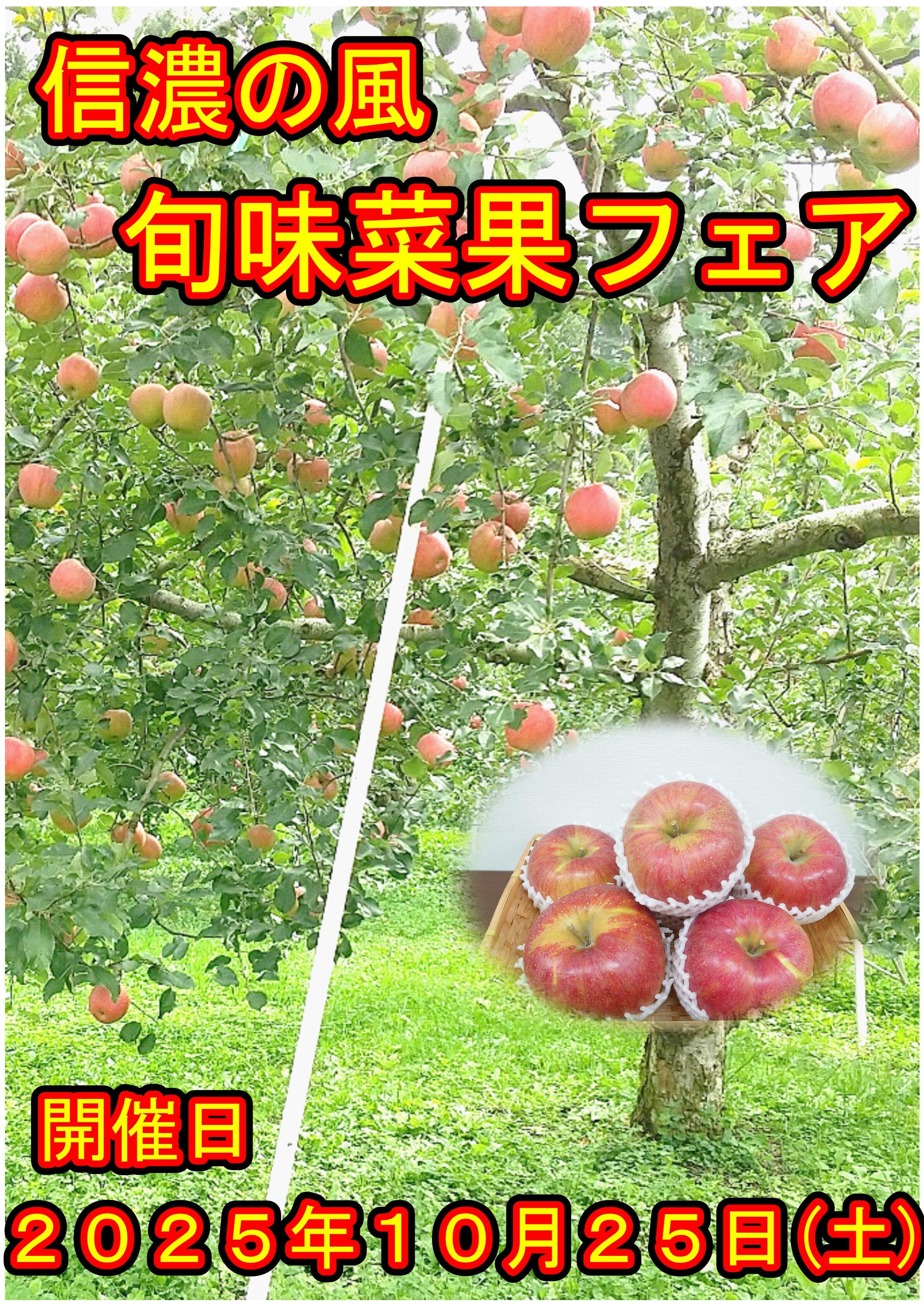 「信濃の風」 ショップ概要 店 名:信濃の風 営業時間:11:00~19:00 場 所:JR大宮駅東口2階(MIDORIエキナカ大宮) お知らせ 2025.11.29 「信濃の風・旬味菜果フェア」開催のお知らせ 2025.10.25 「信濃の風・旬味菜果フェア」開催のお知らせ 2025.9.26 「信濃の風・旬味菜果フェア」開催のお知らせ 2025.8.28 「信濃の風・旬味菜果フェア」開催のお知らせ 2025.7.29 8月1日(金)15時から信濃町産とうもろこしの販売のお知らせ 2025.7.26 「信濃の風・旬味菜果フェア」開催のお知らせ 2025.6.25 【数量限定】おやき販売します。「信濃の風 恩返し」フェア開催のお知らせ 2025.5.31 「信濃の風・旬味菜果フェア」開催のお知らせ 2025.4.26 「信濃の風・旬味菜果フェア」開催のお知らせ 2025.3.29 「信濃の風・旬味菜果フェア」開催のお知らせ 2025.2.22 「信濃の風・旬味菜果フェア」開催のお知らせ 2025.1.24 「信濃の風・旬味菜果フェア」中止のお知らせ 2025.1.21 「信濃の風・旬味菜果フェア」開催のお知らせ 2024.11.30 「信濃の風・旬味菜果フェア」開催のお知らせ 2024.10.23 「信濃の風・旬味菜果フェア」開催のお知らせ 2024.9.27 「信濃の風・旬味菜果フェア」開催のお知らせ 2024.7.28 8月1日(木)15時から信濃町産とうもろこしの販売のお知らせ 2024.7.24 「信濃の風・旬味菜果フェア」開催のお知らせ 2024.6.21 【数量限定】おやき販売します。「信濃の風 恩返し」フェア開催のお知らせ 2024.5.23 「信濃の風・旬味菜果フェア」開催のお知らせ 2024.4.26 「信濃の風・旬味菜果フェア」開催のお知らせ 2024.3.28 「信濃の風・旬味菜果フェア」開催のお知らせ 2024.1.23 「信濃の風・旬味菜果フェア」開催のお知らせ 2023.11.21 「信濃の風・旬味菜果フェア」開催のお知らせ 2023.10.25 「信濃の風・旬味菜果フェア」開催のお知らせ 2023.9.26 「信濃の風・旬味菜果フェア」開催のお知らせ 2023.8.24 「信濃の風・旬味菜果フェア」開催のお知らせ 2023.7.27 「信濃の風・旬味菜果フェア」開催のお知らせ 2023.6.21 「【おかげさまで2周年】6月24日から"信濃の風 恩返し"」フェア開催のお知らせ 2023.5.25 「信濃の風・旬味菜果フェア」開催のお知らせ 2023.4.27 「信濃の風・旬味菜果フェア」開催のお知らせ 2023.3.23 「信濃の風・旬味菜果フェア」開催のお知らせ 2023.2.25 「信濃の風・旬味菜果フェア」開催のお知らせ 2023.1.28 「信濃の風・旬味菜果フェア」開催のお知らせ 2022.11.26 「信濃の風・旬味菜果フェア」開催のお知らせ 2022.10.27 「信濃の風・旬味菜果フェア」開催のお知らせ 2022.9.28 「信濃の風・旬味菜果フェア」開催のお知らせ 2022.8.24 「信濃の風・旬味菜果フェア」開催のお知らせ 2022.6.28 【1周年感謝祭】7月1日から「信濃の風恩返し」開催 2022.5.30 【期間限定】善光寺御開帳記念商品の販売のお知らせ 2021.12.22 「信濃の風・旬味菜果フェア」開催のお知らせ 2021.11.24 「信濃の風・旬味菜果フェア」開催のお知らせ 2021.10.21 「信濃の風・旬味菜果フェア×銀座NAGANO」開催のお知らせ 2021.9.23 「信濃の風・旬味菜果フェア開催のお知らせ」 2021.7.30 「信濃・産直フェア中止のお知らせ」 2021.6.17 「信濃の風」オープンプレス